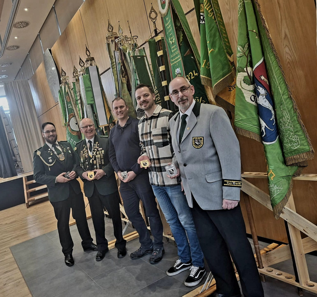 Eine besondere Auszeichnung erhielt auĂerdem Reinhard Reh: FĂŒr sein langjĂ€hriges ehrenamtliches Engagement fĂŒr den KSV wurde er mit der Verdienstnadel in Gold des Deutschen SchĂŒtzenbundes (DSB) geehrt. đ